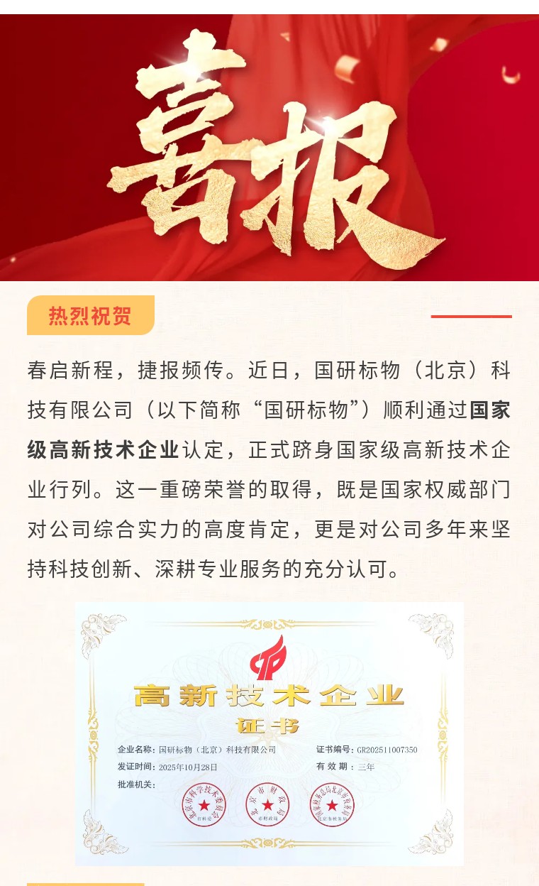 喜报 | 国研标物通过国家高新技术企业认定!